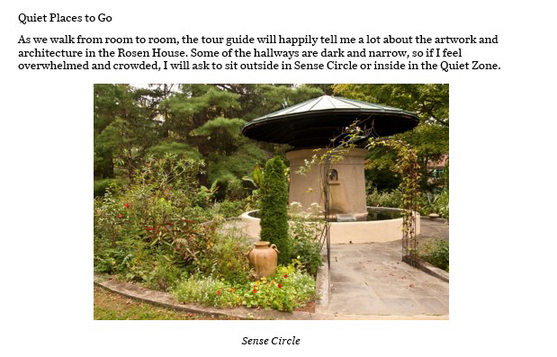 The first project I was able to complete was the Rosen House Social Story for students with autism. Individuals on the autism spectrum have difficulty understanding others’ perspectives and understanding social cues to respond appropriately to their situation. A social story walks readers through an experience and prepares them for it by modeling appropriate interactions. Using this method, I created a walkthrough of one’s experience of coming to the Rosen House for a school visit. You can check it out here and share it with first time visitors to use when they come to Caramoor too!
