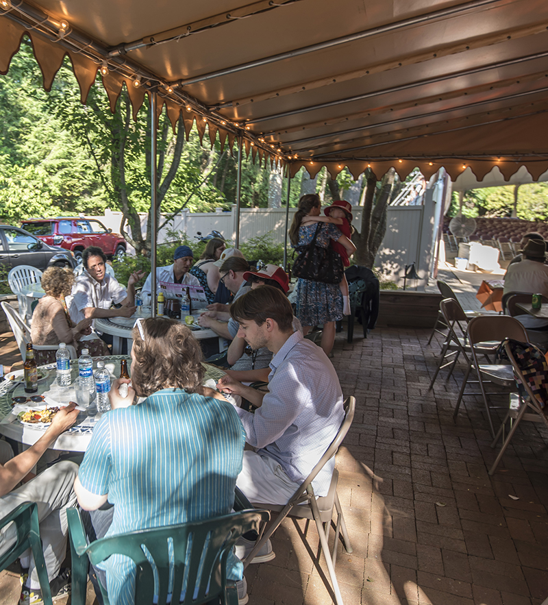 By moving the backstage entrance and the Artists Patio access to the other side of the Venetian Theater and away from the busyness of the Venetian Circle, our artists can enjoy this private area set a little more into our peaceful woodland gardens. The Patio, with its dining tables and landscaped terrace, is a respite from our artists’ busy performance schedulea place where they can relax under the canopies, enjoy the summer weather, have a freshly cooked meal, a beer or a glass of wine, and/or a conversation with their ensemble-mates or Caramoor staff.