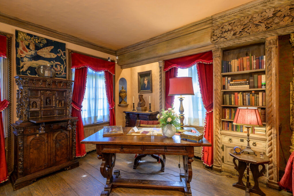 A smaller piece can be found in Mrs. Rosen’s bedroom. This tiny tapestry thought to be woven in the Fontainebleu workshop in the 1600s is more whimsical and features a fantastical creature with insect wings and legs transformed into leafy scrolls.