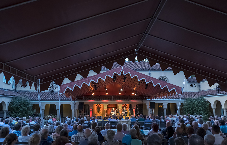 “It’s such an intimate outdoor spot for hearing live music. I feel like I’ve traveled abroad to Europe due to the architecture of the house which surrounds the venue. Birds and dragonflies swoop through (plus the occasional frog in the fountain…), and the stained glass windows lit from within the Rosen House combined with the terrific performances make it a unique and wonderful place for a concert.”