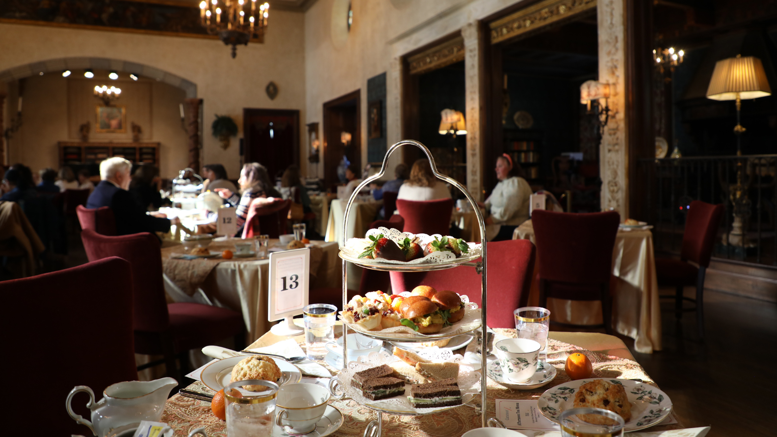 The full afternoon tea service includes savory tea sandwiches, scones with crème fraîche and preserves, and elegant desserts, plus a complimentary glass of bubbly, our gift to you!