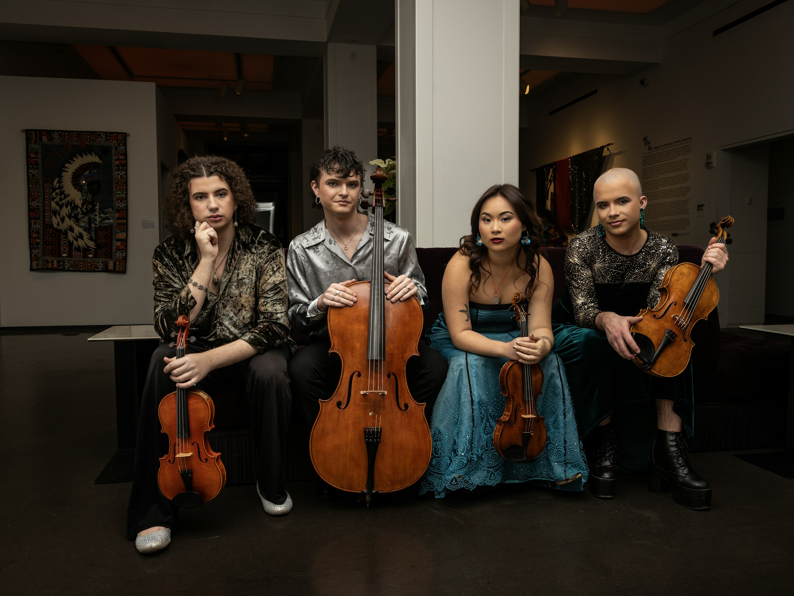 Members of the Poiesis Quartet play on instruments and bows generously loaned by Jonathan Solars Fine Violins.