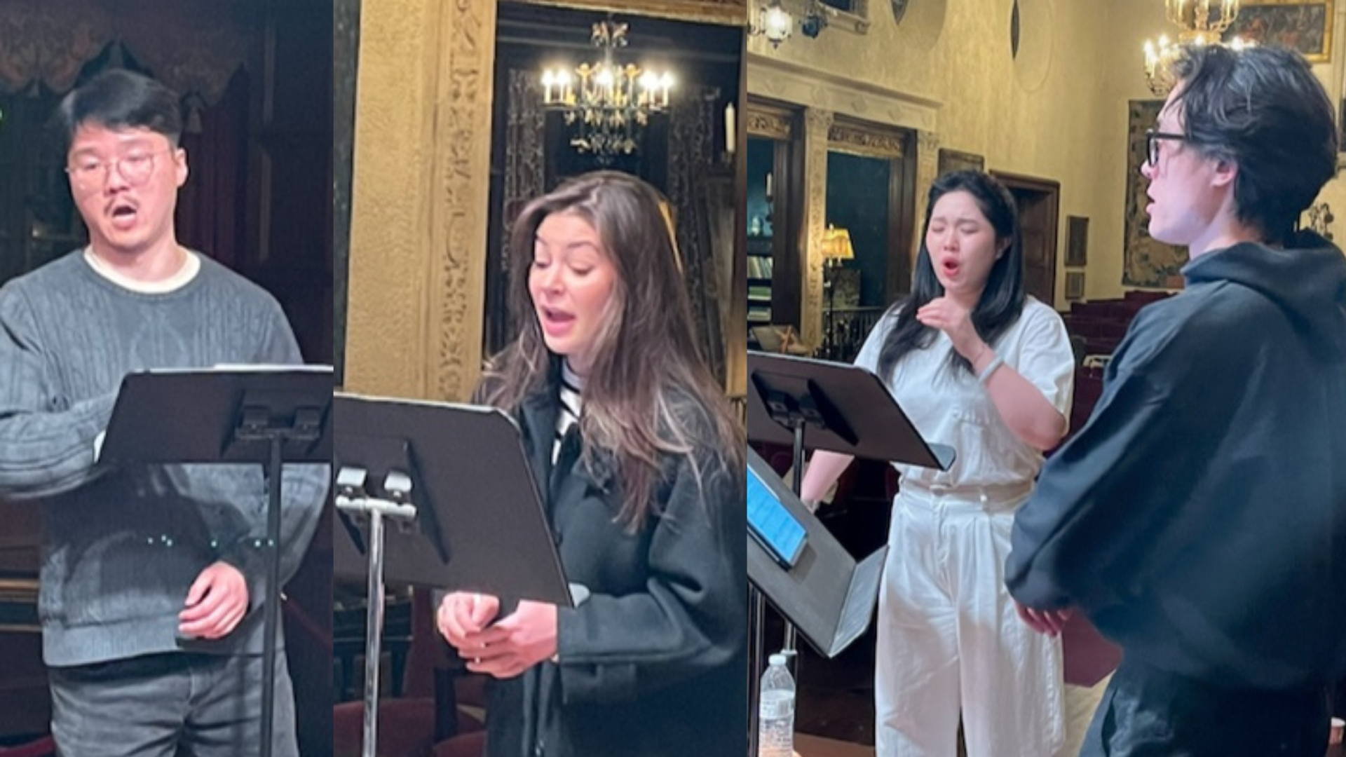 Many remarkable moments today, most of them involving taking our cast just past their comfort zone and into the next level of their potential. Will Kim was singing Schubert’s “Der Zwerg” in the bass key, and I felt sure it would work better in the version for “middle voice.” I asked him about it and he said that the higher key had a section that was not comfortable. But I knew that the lower key ended on a low note that Will didn’t have all the time. “When was the last time you tried it in a-minor?” “Oh, some time ago, when I was learning it. I sang it once.” “Would you humor me and try it again?” He quietly agreed—and it became obvious that he was able to tell the story with greater vocal charisma in the baritone key. I don’t like to be an arm-twister, but Béné backed me up and Will agreed to tackle it in a-minor, which was Schubert’s original key for the song.