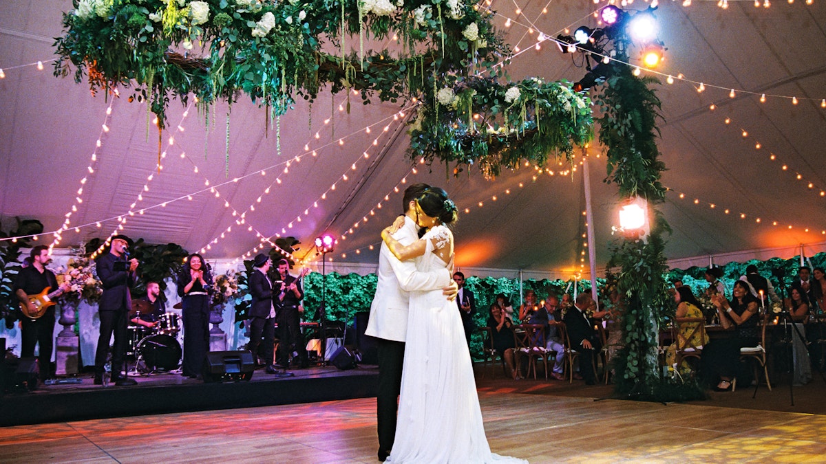 A 50x80 white tent adorned with string lighting and accommodating up to 250 guests, the Pavilion Tent is a weatherproof, blank canvas for your wedding reception or party. The Italian Pavilion, part of Caramoor’s historic collection, sits adjacent to the tent, adding a touch of Mediterranean architecture. For a fun late-night bite, food trucks can park alongside the tent on our Pavilion Patio, keeping the celebration going well into the night.