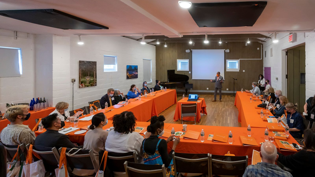 Our most versatile and casual venue, the Education Center features a large meeting room with risers, perfect for corporate retreats, presentations, or creative workshops. With additional arts and crafts spaces, a kitchenette, and a cozy conference room upstairs, it’s a functional space for team-building events and community programs.