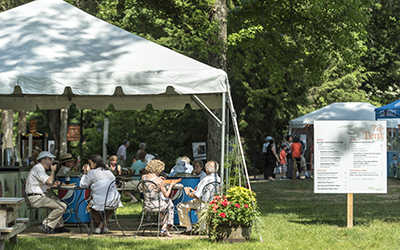 Our Concessions Tent offers a variety of delicious, organic, and locally sourced meals, snacks, and beverages provided by Great Performances. You will find a wide range of seasonal sandwiches, salads, snacks, desserts, pre-packaged cocktails, wine, beer, water, lemonade, coffee, iced tea, and more.