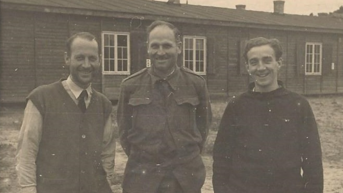 That man is Lucie Rosen’s brother, John “Johnny” Dodge, pictured during his imprisonment in World War II at Dalag Luft, a prisoner-of-war camp in Germany. The other two men and the photographer are not identified. The story of this photo begins many years before it was created, and the smiles of the men belie their wartime circumstances.